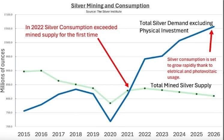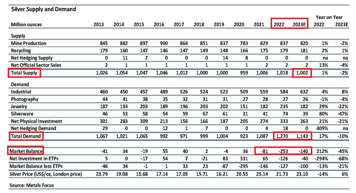 SILVER IN STRUCTURAL DEFICIT: demand has outweighed supply the past three years and this was BEFORE the seize and freeze of Russian assets.